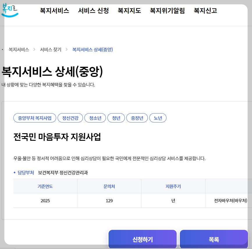 필요한 분들에게 이 정보가 널리 전달되어, 더 많은 국민이 심리적 회복의 기회를 얻기를 바랍니다.